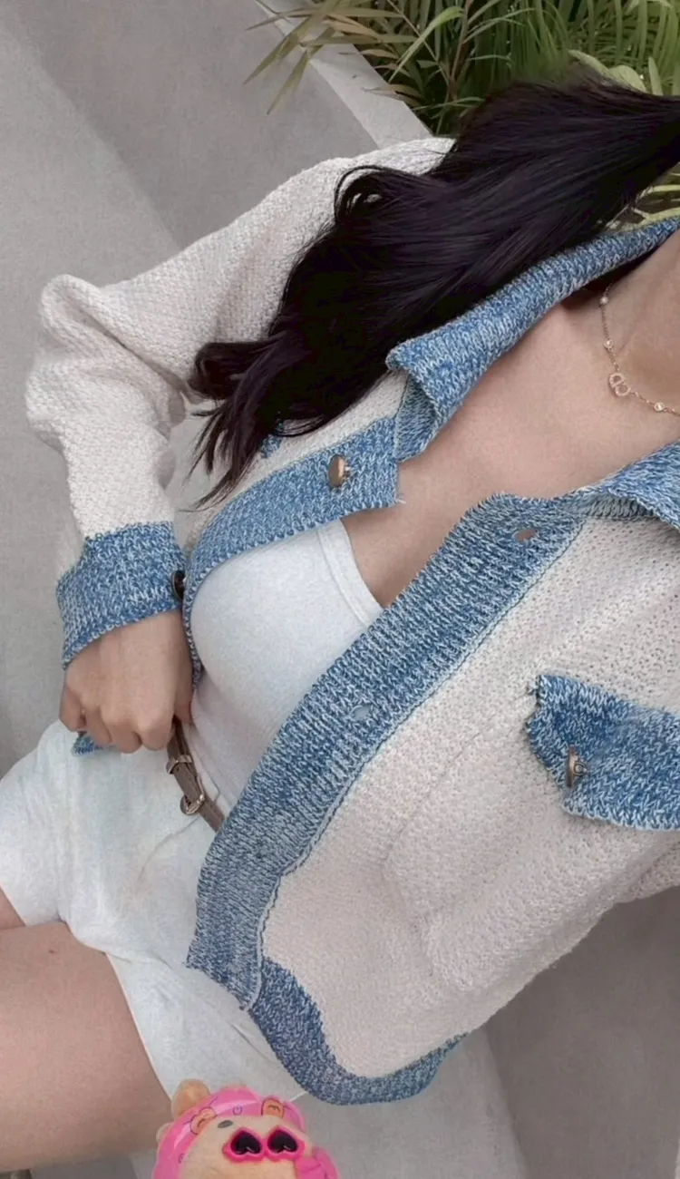 藍白小香針織外套