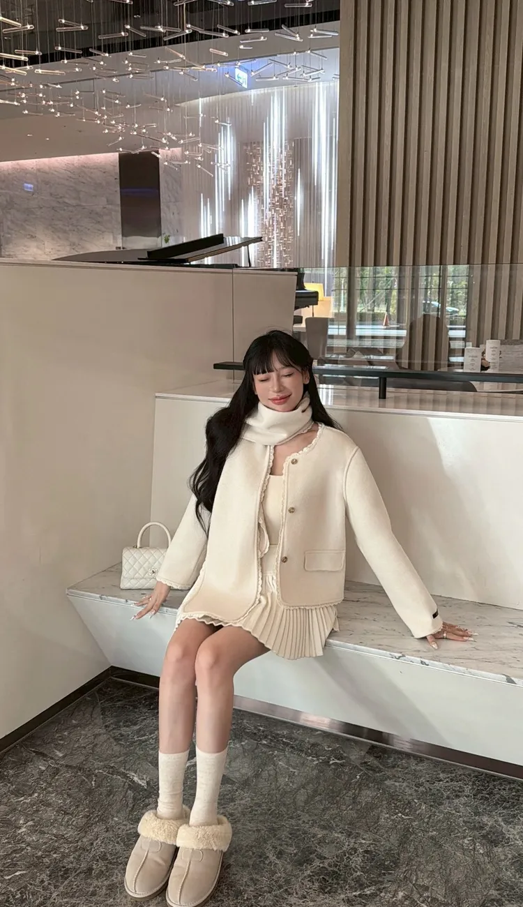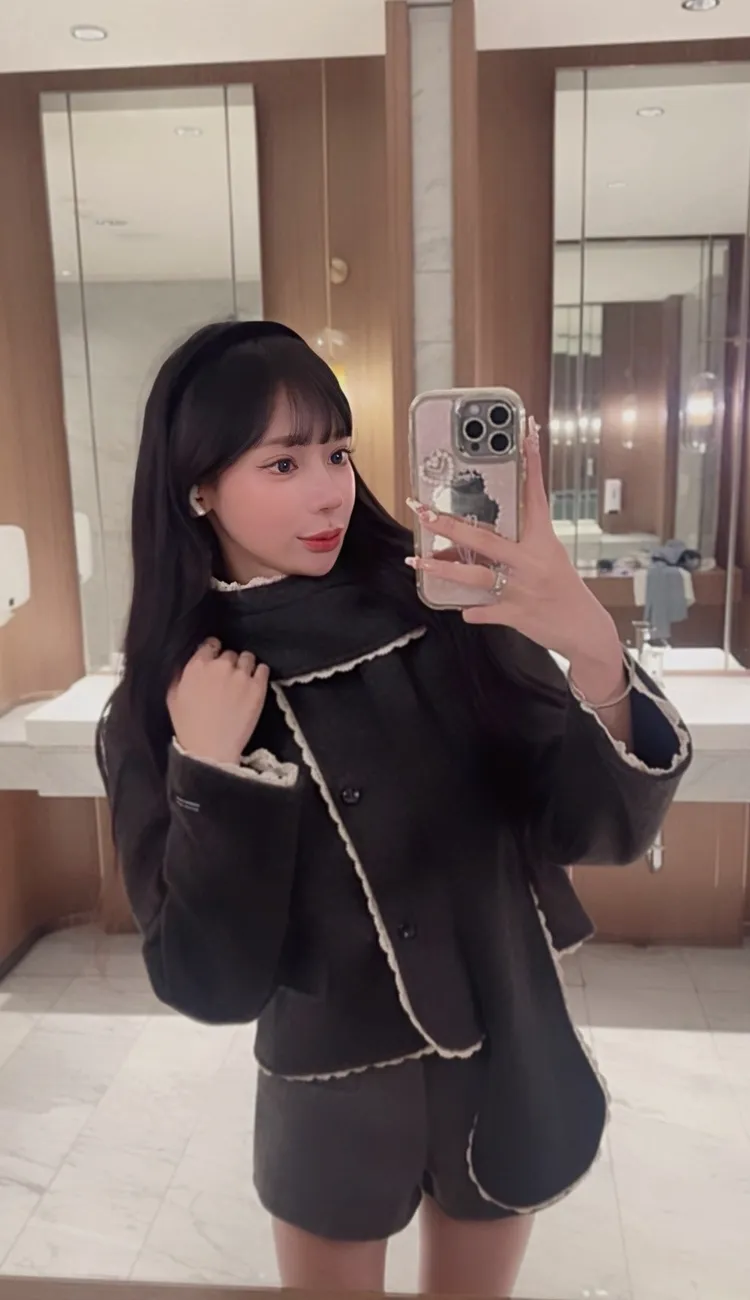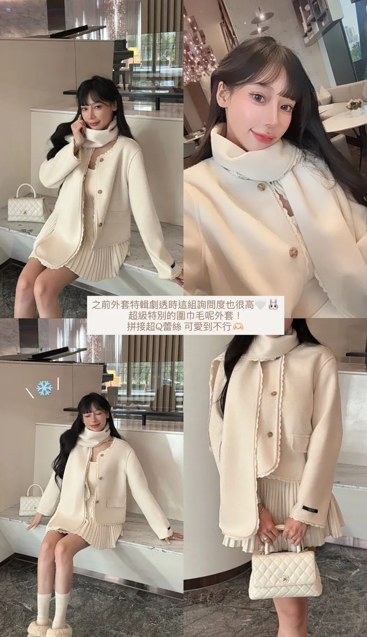 最可愛🐰蕾絲圍巾毛呢外
