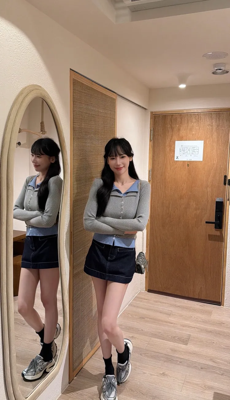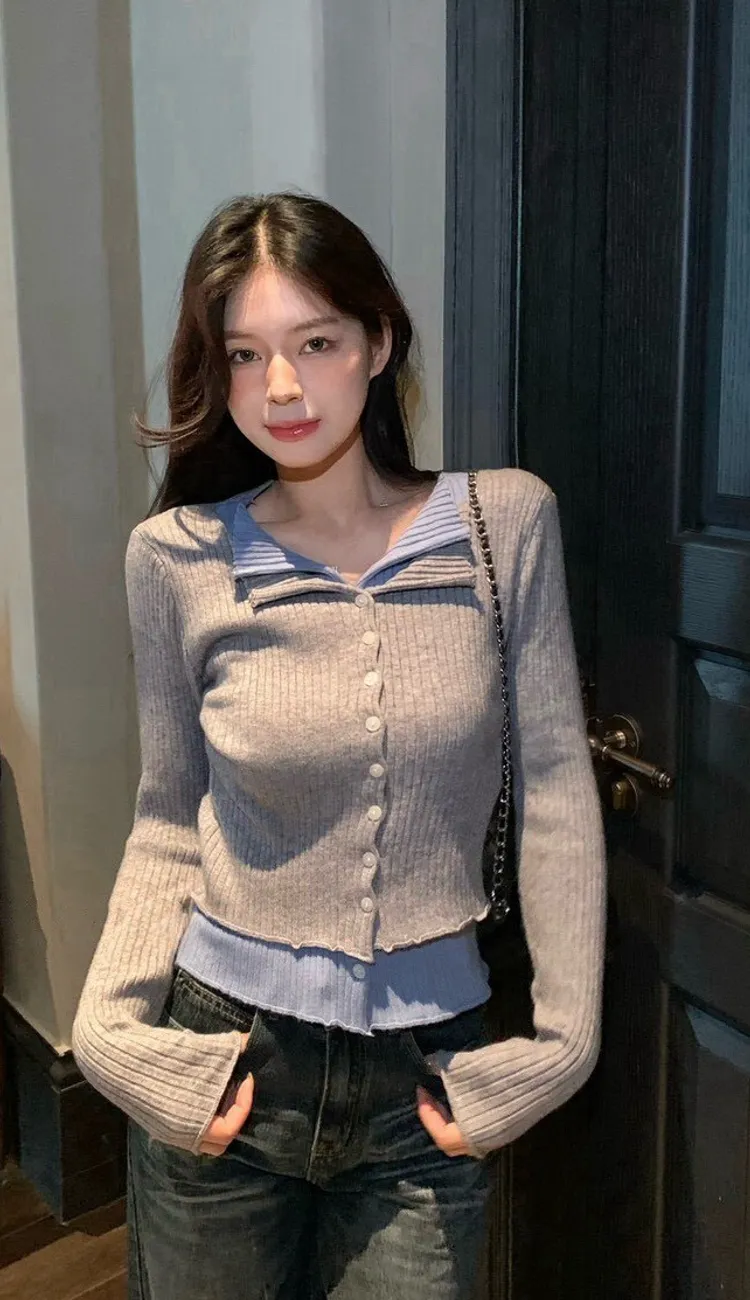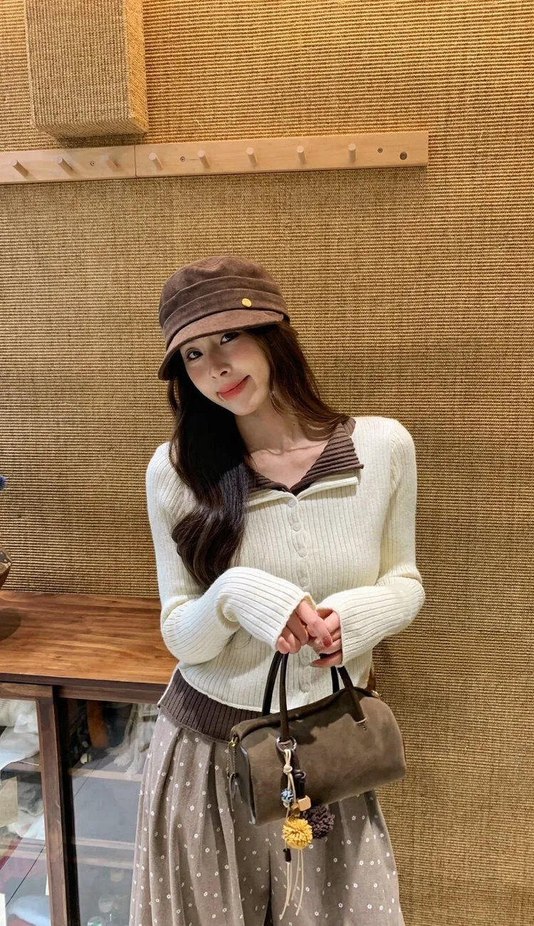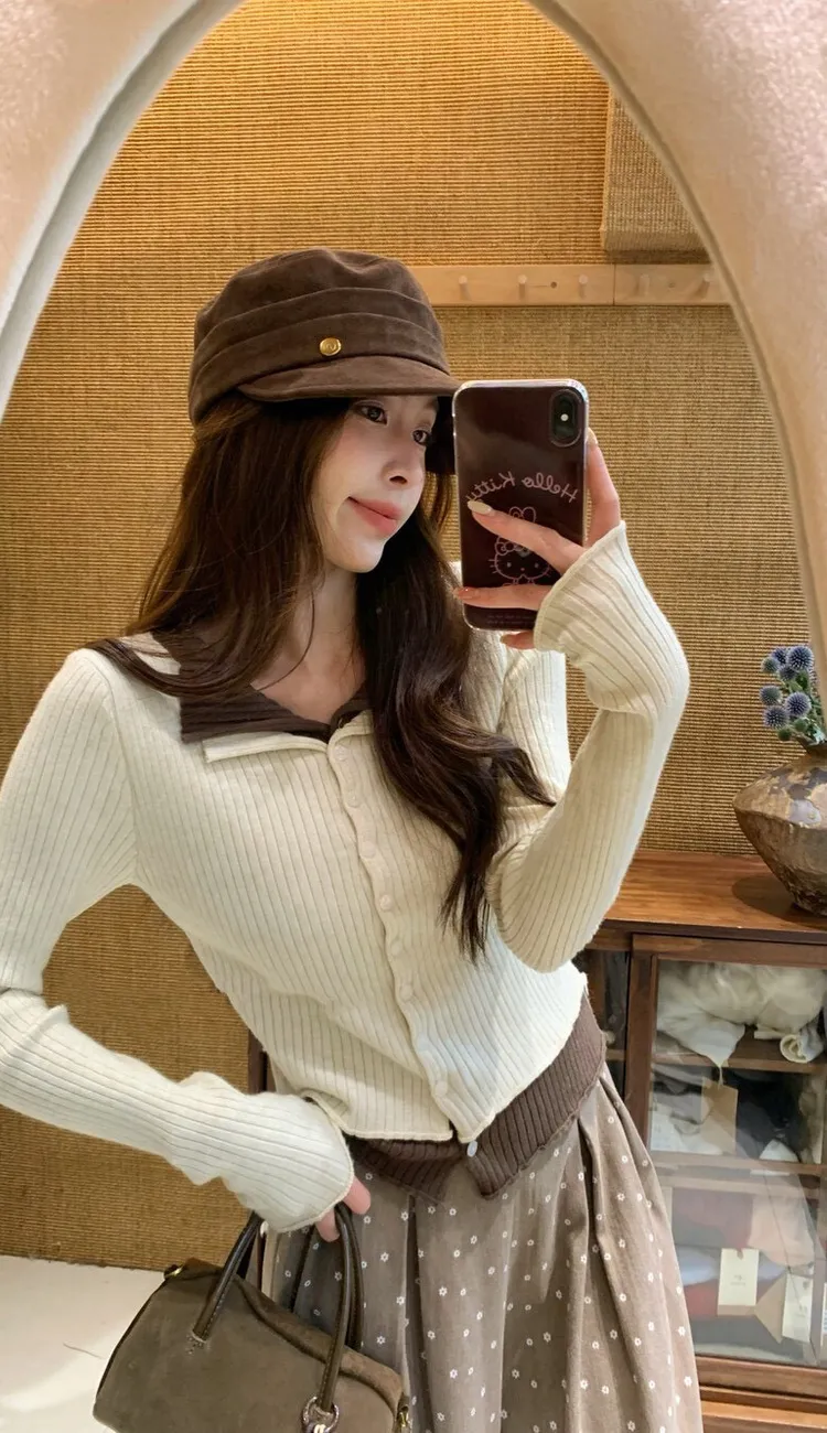撞色韓妞針織上衣