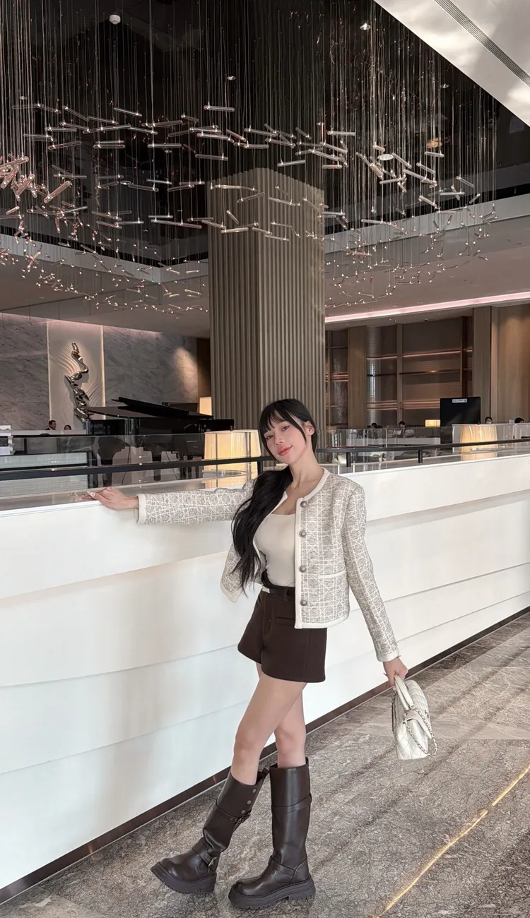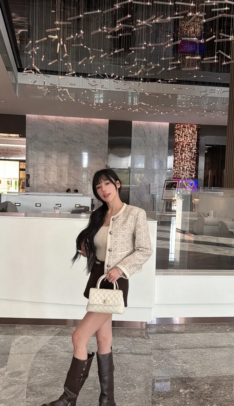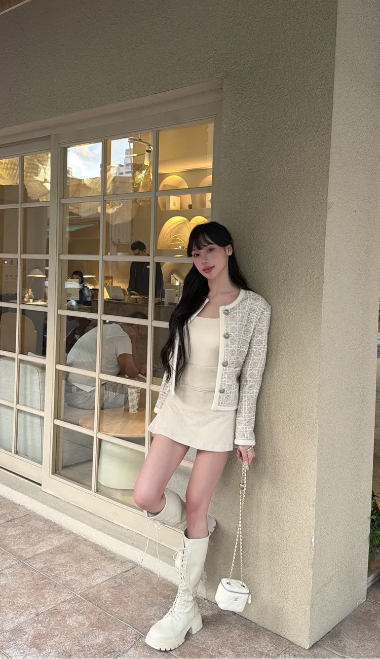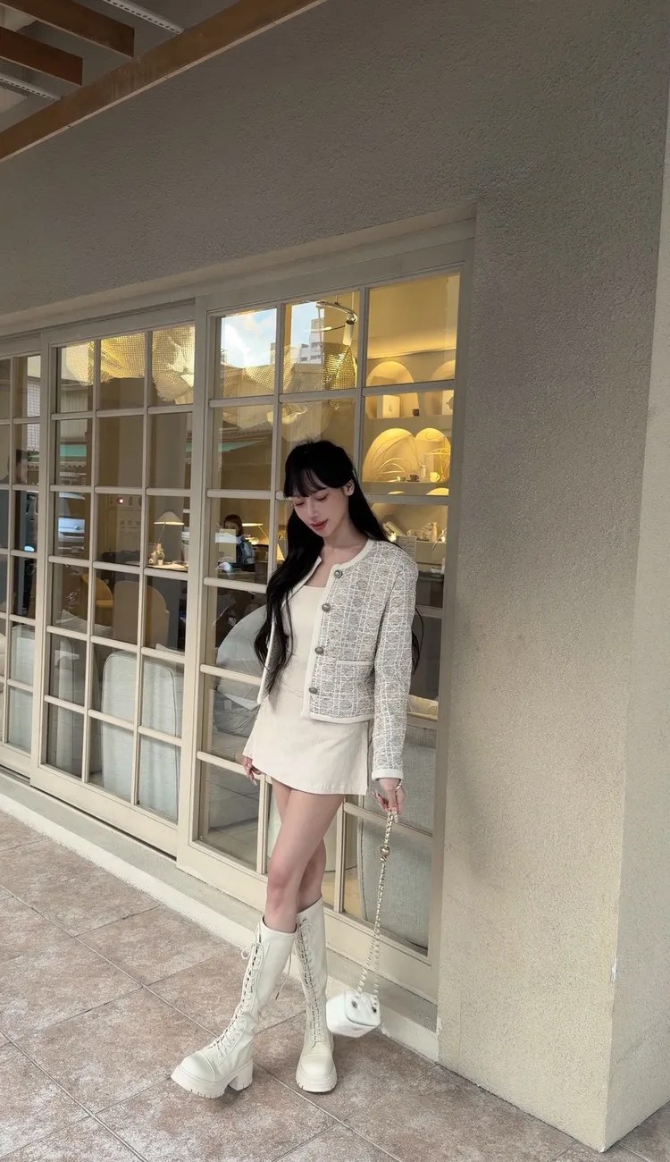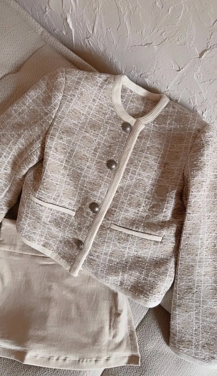 名媛奶茶織紋小香外套